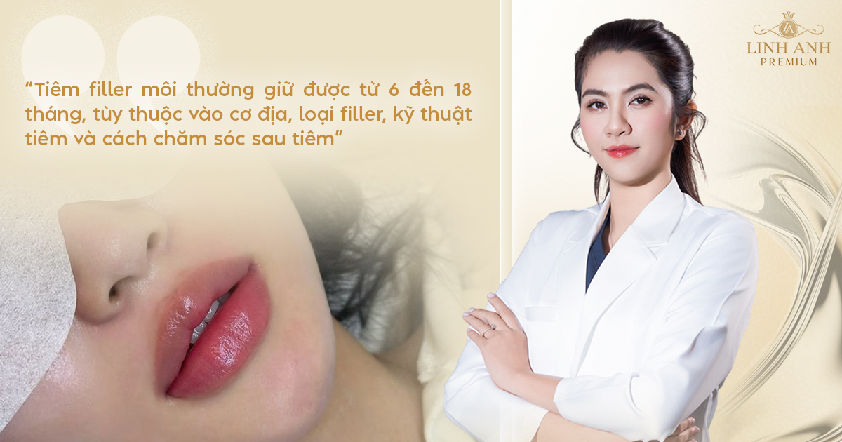 Trung bình, filler môi giữ được khoảng 6–12 tháng. Sau khoảng thời gian này, filler sẽ dần mềm ra, giảm thể tích và được cơ thể hấp thu tự nhiên.